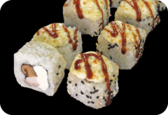рис, сыр, нори, икра масаго (кр), лосось (шапка), соус на выбор