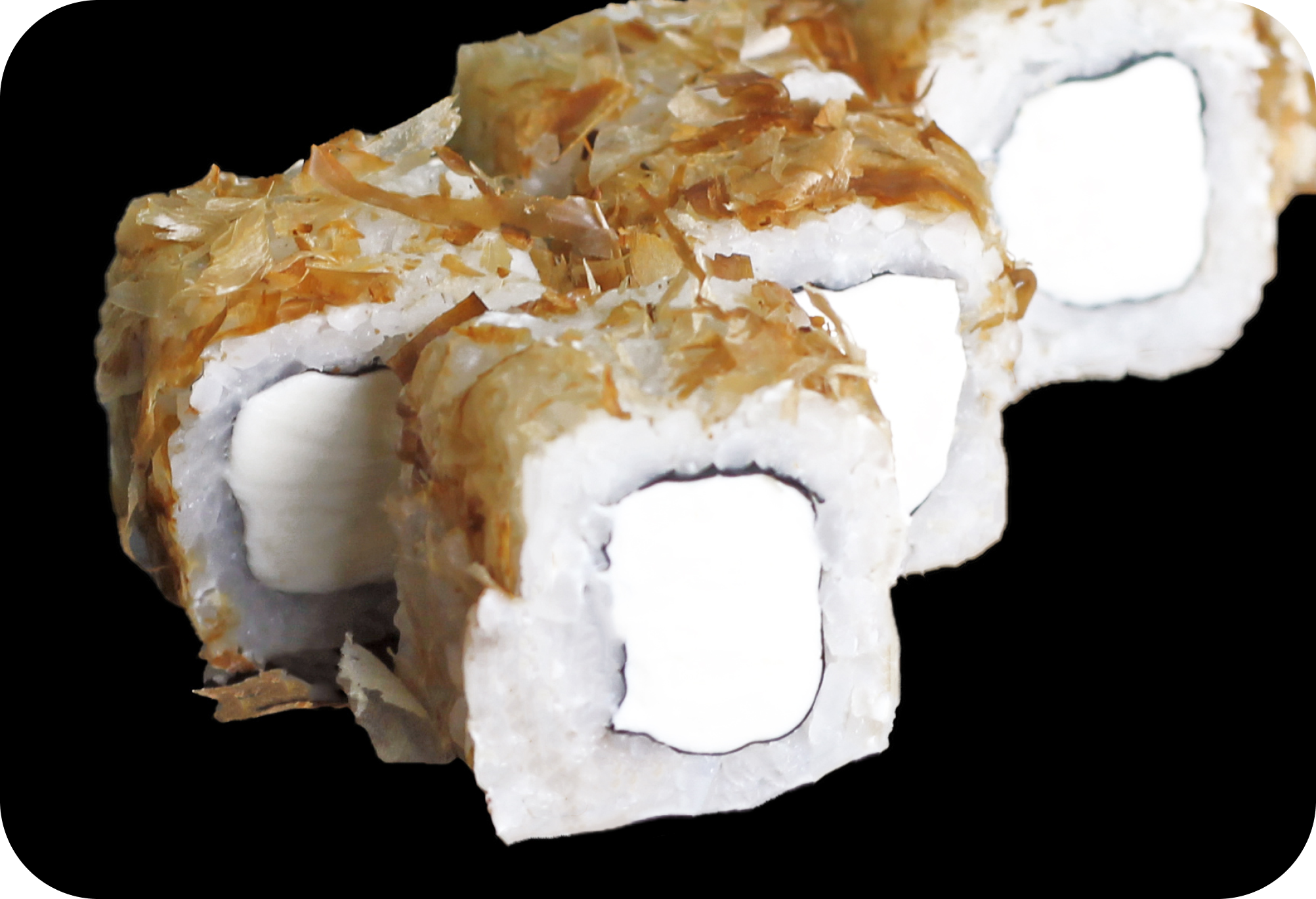 рис, нори, сыр, лосось, стружка тунца