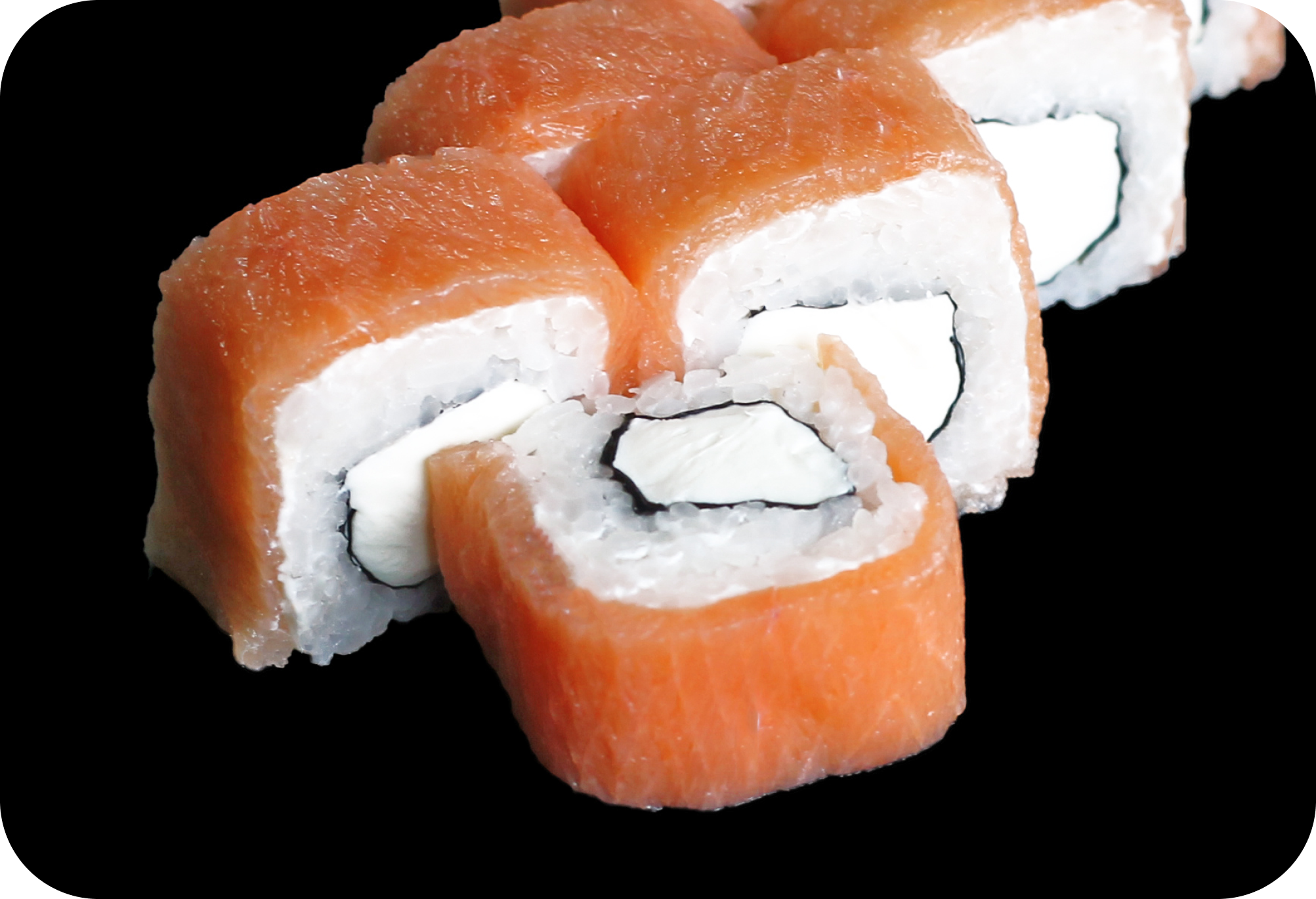 рис, нори, сыр, авокадо, лосось (шапка)