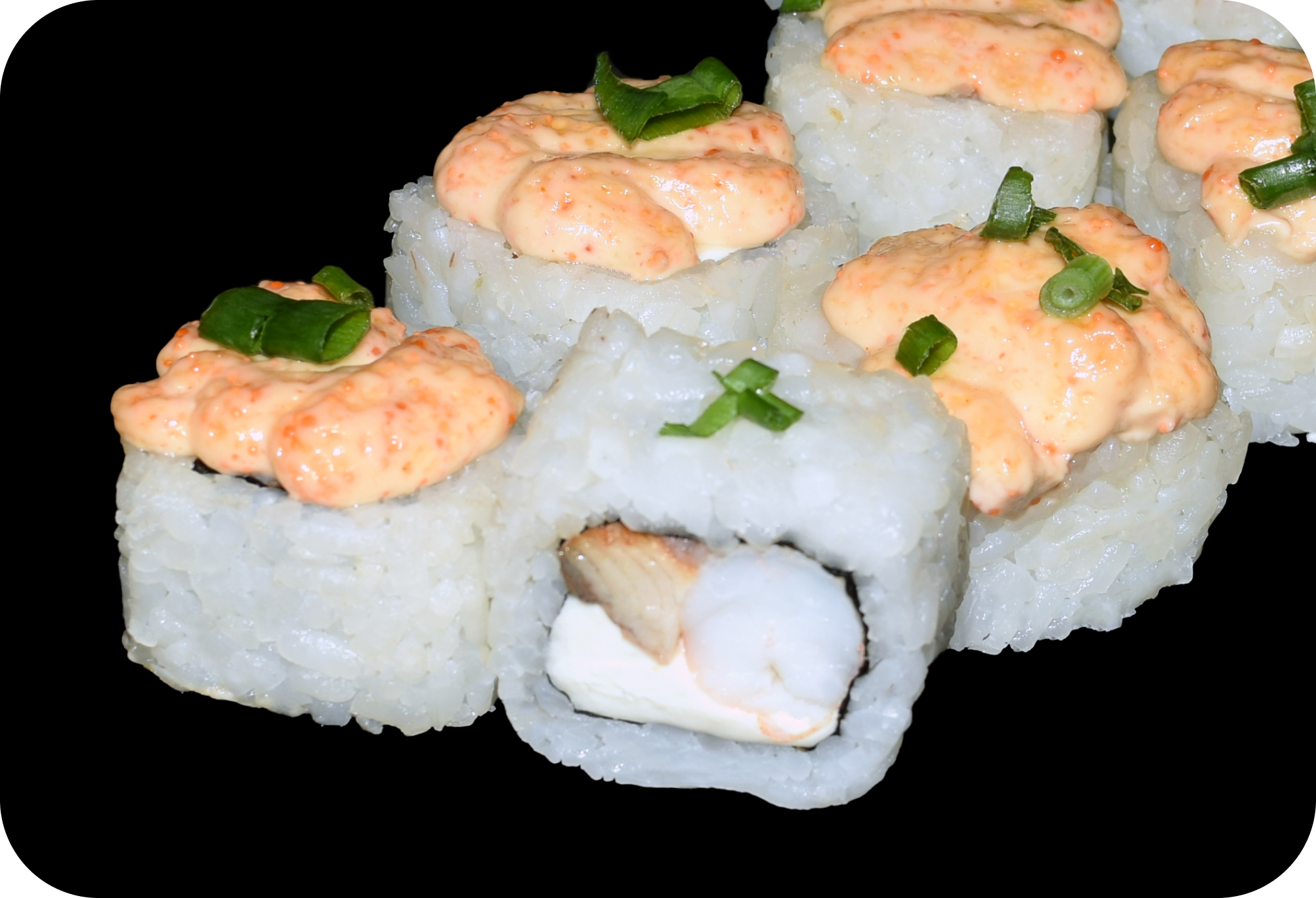Сыр, Угорь, Зеленый лук, Креветка, Спайси соус