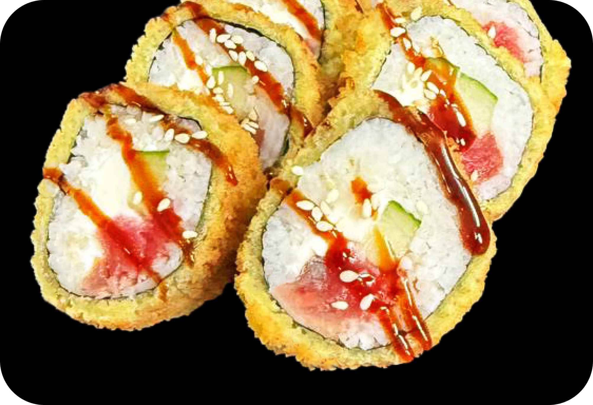 Сыр, Унаги соус, Огурец, Кунжут, Тунец темпура